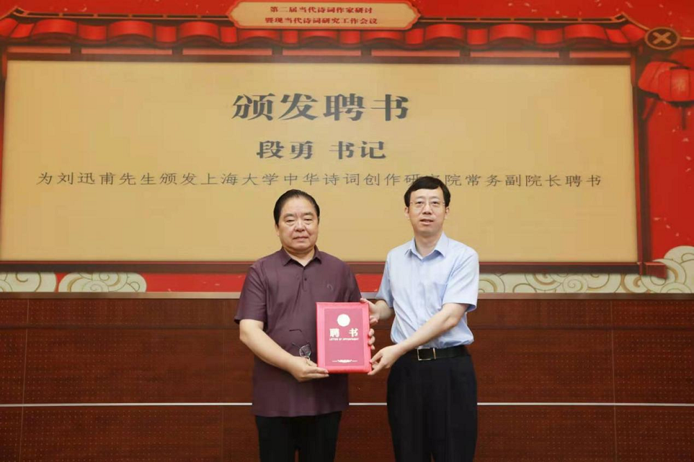 并为刘迅甫先生颁发jdb电子中国官方网站中华诗词研究院常务副院长聘书。