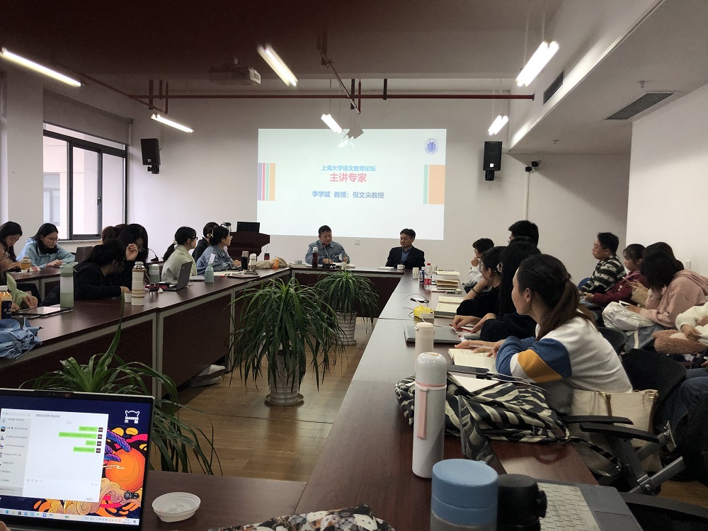 2021年10月21日下午2点至9点,上海师范大学李学斌教授,华东师范大学倪文尖副教授应邀参加jdb电子中国官方网站“语文教育论坛”,在jdb电子中国官方网站406会议室分别做“小学语文阅读教学的方法与策略”“语文课的老问题与新情况”的讲座。