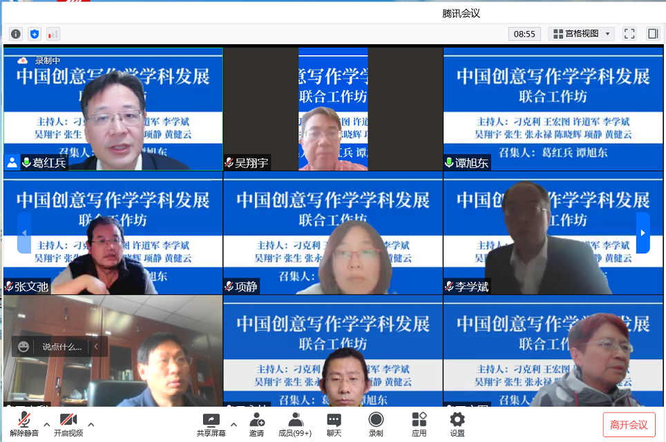 活动伊始,葛红兵教授对参坊学者进行介绍与感谢。他表示,本次活动的召开,一是为疫情下的学术研究“提气”,活跃创写学风;二是为推动学科发展迈入新阶段,探索新论域;三是为参与、关注创写学科建设的专家学者提供对话、探讨的重要平台。在开幕词中,葛红兵教授介绍创意写作学科诞生百年来在助力文化产业化发展、国家创意化发展,在文创产业实践领域承担了基础学科的支撑作用。进入新世纪以来,中西方创意写作学科同步进入了学科建制化、系统化发展时期,理论原创性和体系性建设登上了历史舞台。这次工坊的开展,正是基于这样的学术背景,希望中国创意写作学科能为世界创意写作学科发展提供中国特色理论体系及经验支撑。