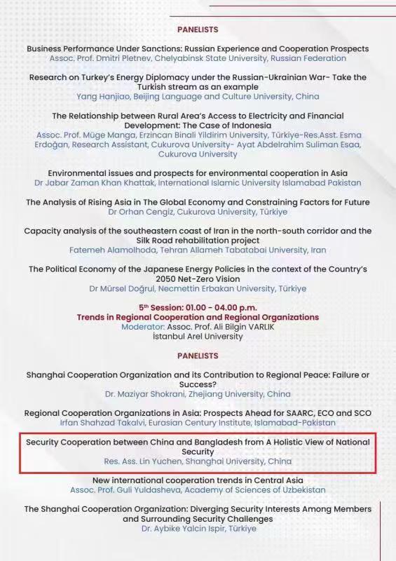 在亚洲的发展中,一直充满了机遇和挑战。为了分析和讨论目前的亚洲合作与困难,探索并评估未来的亚洲动态和机制,2022年5月14-15日,土耳其的伊斯坦布尔阿雷尔大学和伊朗的阿拉梅赫·塔拜塔贝大学组织了以“亚洲的未来机制”为主题的线上国际会议,jdb电子中国官方网站全球问题研究院是会议的合作单位之一。会议为期两天,探讨的主要议题包括:亚洲地缘政治、安全趋势、文化生活、经贸发展和区域合作。来自中国浙江大学、jdb电子中国官方网站,印度尼赫鲁大学,土耳其阿塔图尔克大学、伊朗伊斯兰阿扎德大学等高校的近30名学者和研究者参与其中。