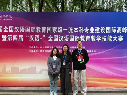 本次大赛是第三届全国汉语国际教育国家级一流本科专业建设高峰论坛的重要组成部分,由国家一级学会中外语言文化比较学会与浙江越秀外国语学院联合主办。来自国内外50所高校的80余位专家学者齐聚论坛,围绕专业建设展开深入研讨;同时有110名中外学生参与教学技能比拼,共同为推动国际中文教育高质量发展贡献力量。(供稿陈鑫颖,审核张永禄)