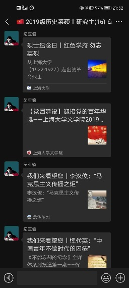 4月4日上午,2019级历史系硕士研究生党支部在线开展了清明节怀念老上大英烈主题党日活动,支部党员同志和积极分子共同参与了此次活动。活动由支部书记纪亚楠同志主持。