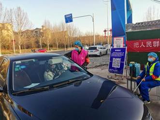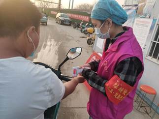 我所在的这一班除了有由村妇联主任组织的抗疫娘子军团,还有来自村里的两位伯伯坐守路两旁为来往车辆喷洒消毒液,还有两位街道办事处的工作人员负责人员统计和外来人员登记,并配备一名区政府下沉科级干部负责督导与处理应急事件。第一次出来的时候,我还在社区办了一张临时出入证。来到卡点,阿姨伯伯们都觉得我一个小女生不应该在这里。当时外面天气还很寒冷,他们总是会喊我进屋去避风,但我觉得我已经是年满二十岁的成年人了,同时也是一名预备党员,大家能做到的事情我也能做,便没有移动,继续我的工作。我觉得在全国正接受疫情考验的关键时期,能贡献一点自己微薄的力量就是最有意义的事情了。在三个小时的初次尝试中,我内心充满了激动与新奇,大概真的是闷在家里太久了,终于有了外出活动的机会,最重要的是觉得这是一件很有使命感且光荣的事情。在岗位上的叔叔、阿姨、伯伯们一天8小时不停值勤,从大年初一开始就没有休息过一天。登记、出示身份证或出入证、测体温、车辆消毒,这是自防疫以来每天的标准动作,他们的辛苦付出是我所远远不能比拟的,这更坚定了我想要继续坚守岗位的决心。第一次站岗结束后,我便申请换上了一张长期出入证,每隔一天在下课后或者没课的时候来到防疫卡点上,带上党徽、口罩、帽子,穿上志愿队服进行值守活动,5点到7点钟这个时段是人们进出卡点的高峰期,在这个时段由我来上岗,刚好可以让卡点值勤的相亲们到板房里吃点工作餐。