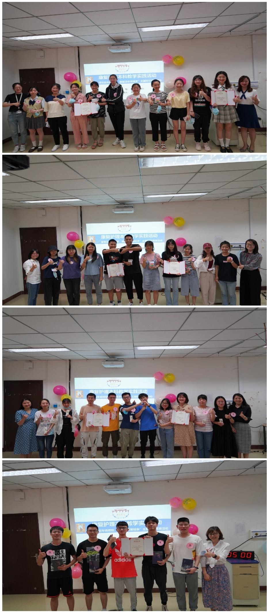 为增强康复护理和课程思政、时事融合及提高学生学习趣味性,不断提高教学质量,2021年5月18日由我院《康复护理学》课程组精心策划的“建党百年铸辉煌,康复谆谆育桃李”主题知识竞赛活动在厚德楼6024教室拉开序幕。