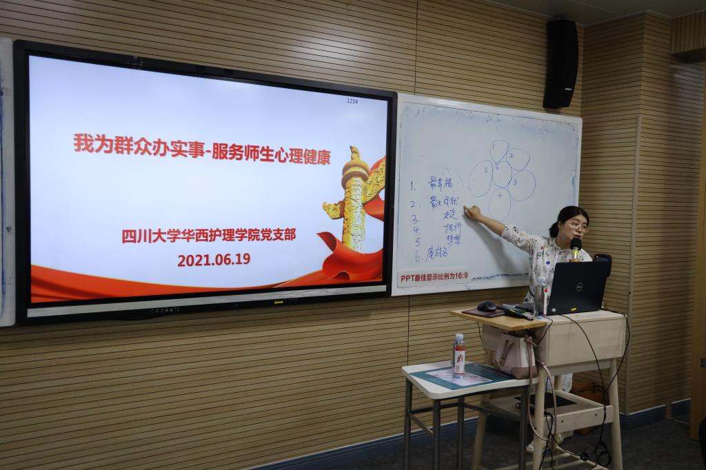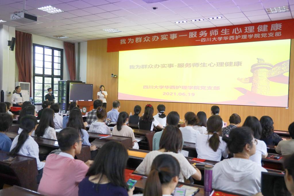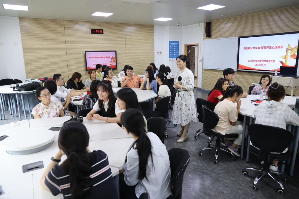 为扎实开展党史学习教育,将党史学习教育同解决实际问题结合起来,为深入贯彻我为群众办实事实践活动精神。6月19日上午,党支部于启德堂425教室开展了“我为群众办实事—服务师生心理健康”主题实践活动。党总支廖浩君书记、学生工作部张猎部长、学院全体党员、“心灵天使”、研究生班主任、本科生班主任、学院学生代表等150余人参加活动。活动由学院邱晨老师主持。