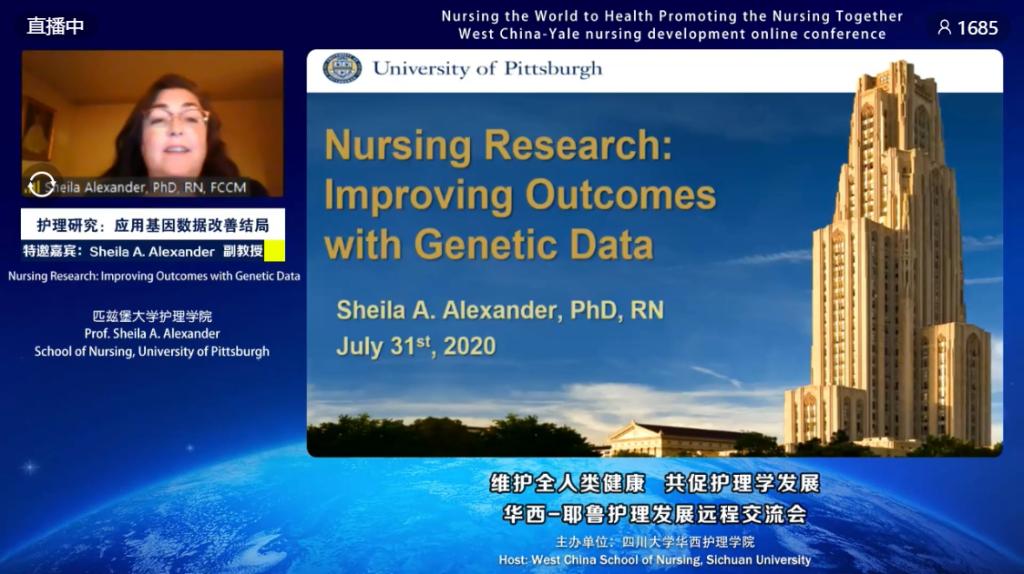 会议首先由bat365中文官方网站李卡执行院长致辞,指出护士在人类健康促进及医疗保健服务中起着重要作用,在全球大健康背景下,为了人类的健康和福祉,需要各国护理院校间大力加强交流与合作。希望未来华西-耶鲁,华西-匹兹堡,华西与国内护理院校在师生互访、线上课程、联合培养研究生、护理教育与研究等方面加强交流与合作。