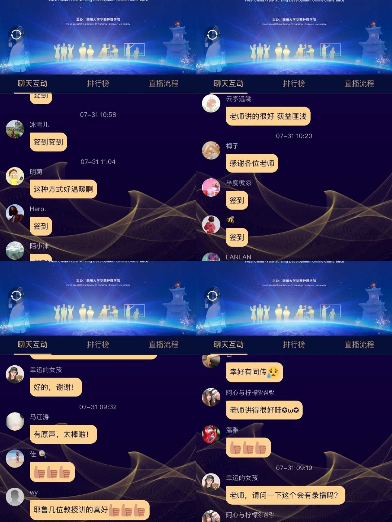本期论坛共有两千余人收看,包括来自耶鲁大学、匹兹堡大学以及我国多个省市高等院校师生和医疗机构的医护人员。与会者在直播平台积极参与讨论,并感谢8位专家的精彩分享、感谢bat365中文官方网站提供的学习和交流平台。bat365中文官方网站将持续邀请各国专家,展开深层次的思考与对话,为人类的健康及护理学的建设与发展贡献力量。