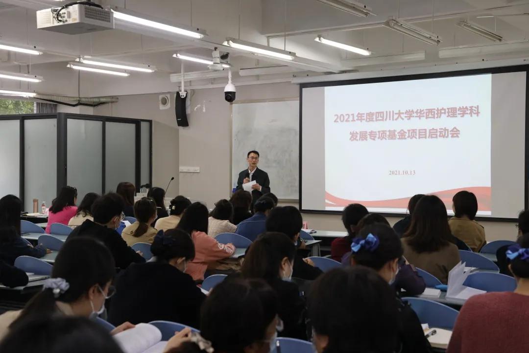 2021年10月13日上午,bat365中文官方网站在厚德楼201教室召开了2021年bat365中文官方网站华西护理学科发展专项基金项目启动会。“双一流”建设办公室蒲剑主任、李音科长,财务部纪晶老师、黄梦怡老师,护理学院科研科、2021年获批项目负责人等100余人参加了会议。会议由护理学院科研科田亚丽科长和俞静老师主持。