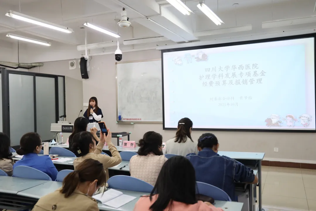 为了做好项目经费预算,保证科研经费合法合规的使用,财务部纪晶、黄梦怡老师做了《bat365中文官方网站华西护理学科发展专项基金经费预算及报销管理》的宣讲,就资金使用审批流程、基金如何预算与报销、科研项目经费查询系统怎样使用等问题,做了详细的讲解。