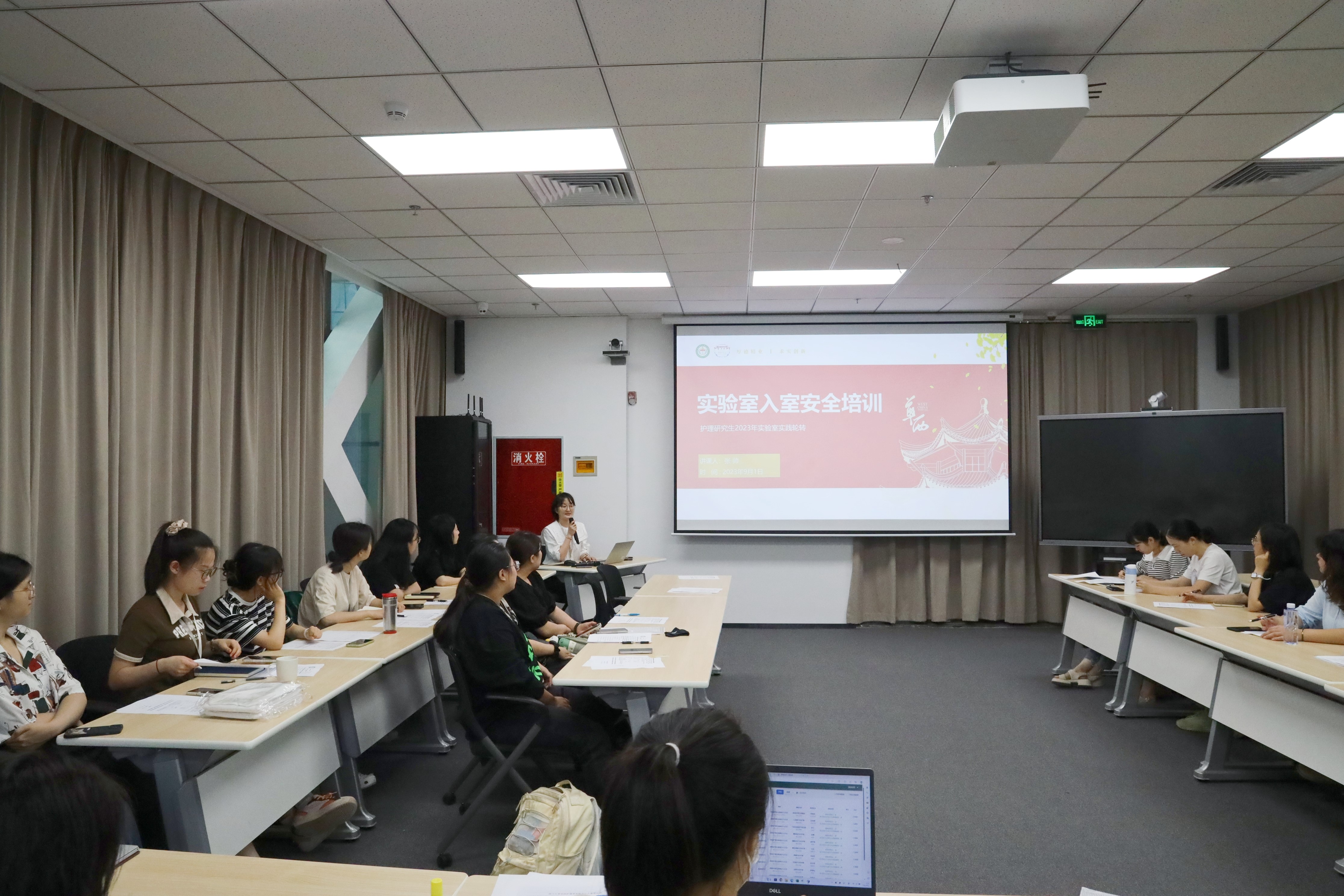 本次入室培训活动共有24名来自护理学专业的硕士、博士研究生同学参加,通过bat365中文官方网站华西护理学实验中心简介、实践轮转计划及要求说明、实验室入室安全培训、实验记录规范、科研诚信与学术规范五个方面的全面培训,同学们对本次实验室实践轮转计划有了清晰的了解。接下来的3-6个月,同学们将分组进行轮转,实践学习分子生物学技术、细胞技术、材料学技术、循证护理等实验方法,深入了解bat365中文官方网站华西护理学科的“全生命周期健康与疾病的精准护理”核心内涵,运用精准护理技术、探索护理科学问题。