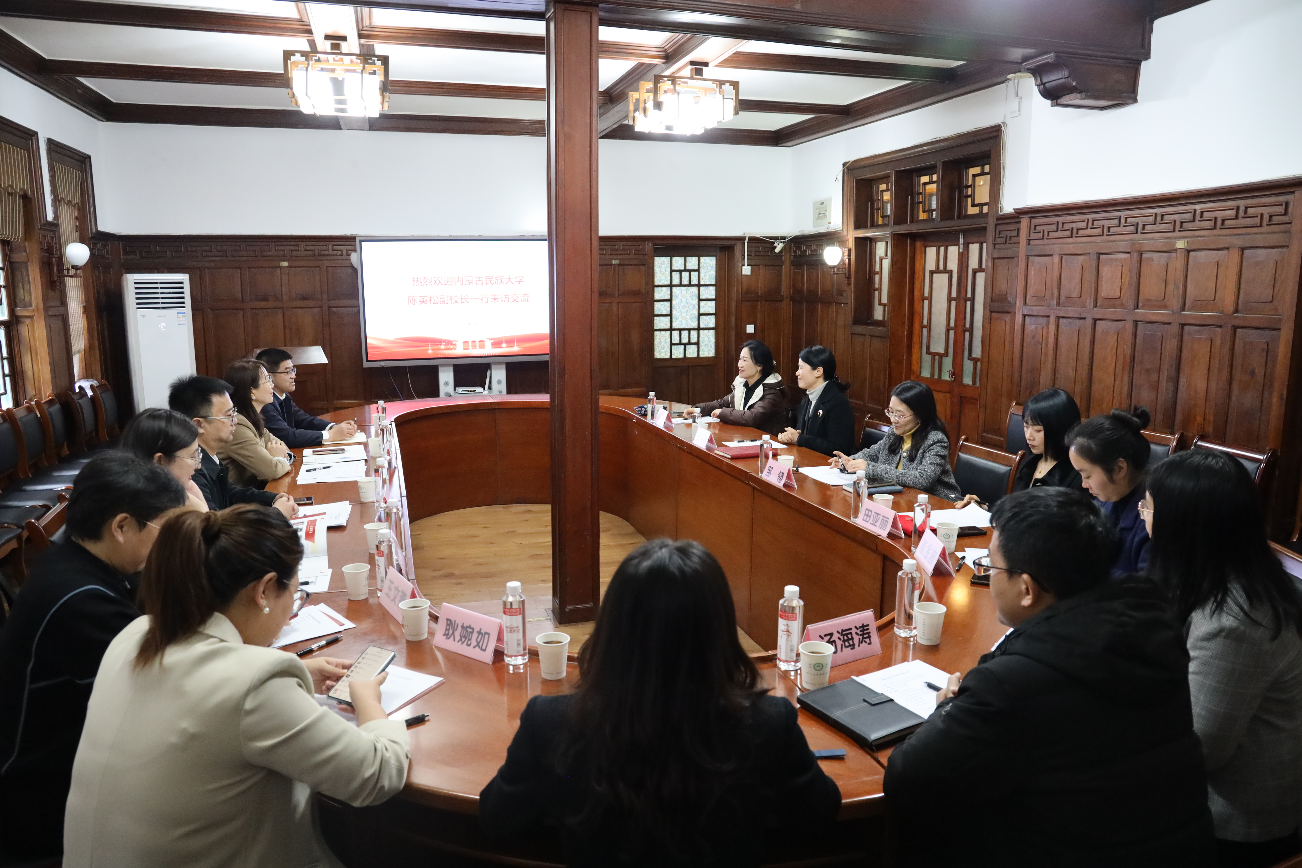 在交流会上,护理学院李卡院长对内蒙古民族大学一行来访表示热烈欢迎,并简要介绍了护理学院基本情况。双方代表就师资队伍建设、学科建设、科学研究、对外交流合作等方面进行了深入交流和探讨。