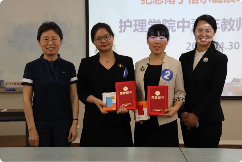 此次比赛根据参赛选手的得分决出获奖名单。其中妇产科护理学教研室于霞老师、基础护理学教研室陈琼老师荣获一等奖;妇产科护理学教研室张婷老师、外科护理学教研室廖灯彬老师和杨婕老师,内科护理学教研室温雅老师荣获二等奖;口腔护理学教研室林洁老师、慢病社区护理学教研室王定玺老师、儿科护理学教研室张同欣老师、心理护理学教研室王凤老师、基础护理学教研室李宁老师和老年护理学教研室许丽老师荣获三等奖;口腔护理学教研室王洁雪老师、儿科护理学教研室李颖馨老师、慢病社区护理学教研室刘祚燕老师、内科护理学教研室陈妍伶老师、重症护理学教研室冯梅老师、急救与创伤护理学教研室袁震飞老师和人文护理学教研室张雨晨老师荣获优胜奖。