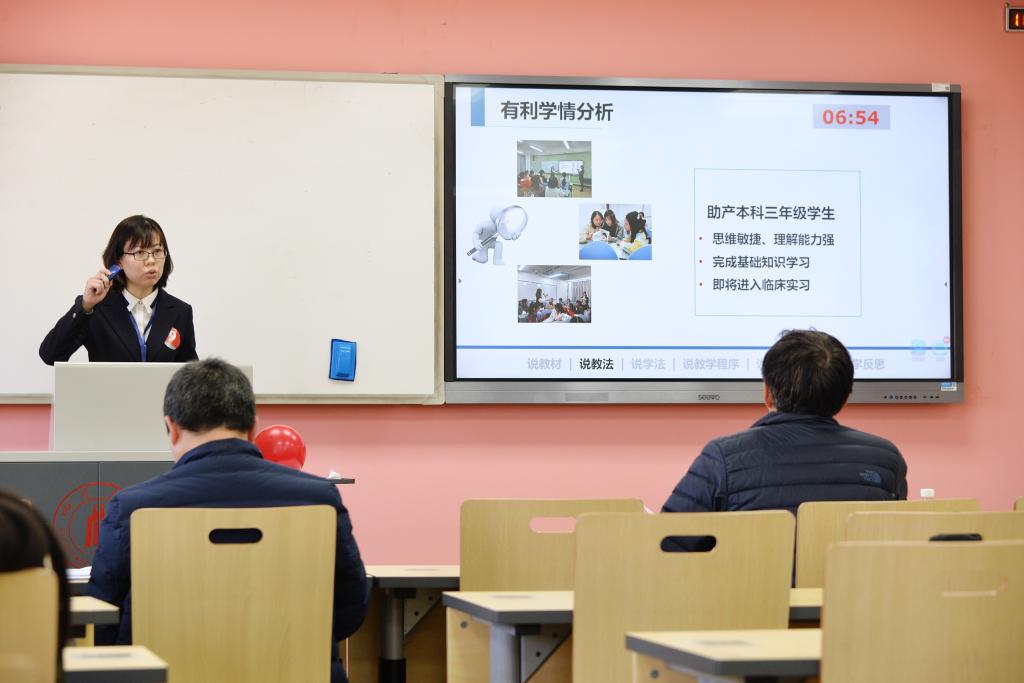 妇产科护理学教研室任建华主任率队,何菁菁、钱黎明和于霞三位青年助产本科教学老师代表参加了比赛。主讲教师何菁菁以“带你探索人生第一次旅行—分娩预演”为题,以建构主义理论为指导,将抛锚式教学、问题和案例为中心的教学模式及仿真教学技术巧妙地融入临床教学过程。经过激烈的讲课比赛,三位老师的授课方法、讲课风格获得评委们一致好评,最终以一等奖的成绩在中级组脱颖而出。