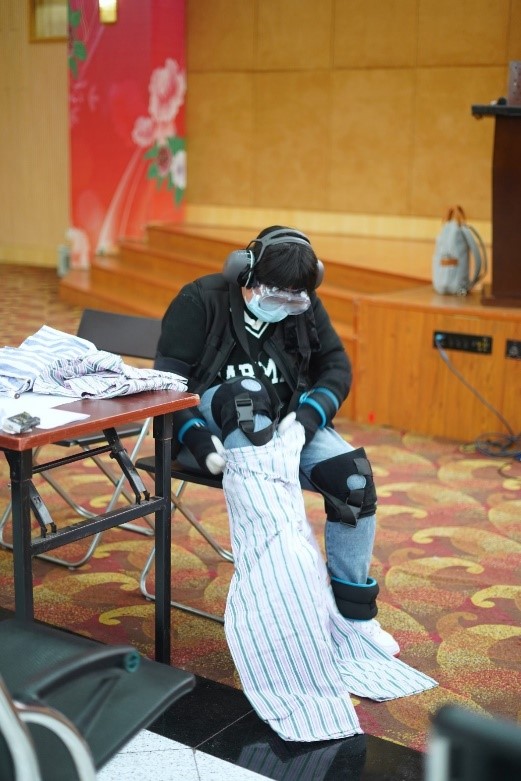(协助学生穿戴老化模拟装备)