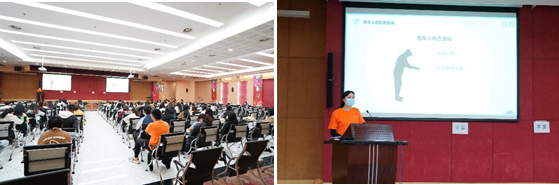 2022年3月23日,在厚德楼多功能厅,本科生模拟课实战开始。课程开始前,负责老师先就老化所带来的功能改变进行了知识点的复习,并介绍了本次模拟体验课的教学目标、注意事项、教学流程等,帮助学生快速进入到模拟教学的状态。