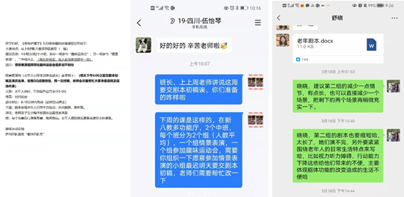 在本次沉浸式老化模拟体验课开始前2周,授课老师提前组织学生编写剧本,老师指导学生在保证情景剧紧紧围绕老年人日常生活特点、老化导致的躯体功能退化这一主题的前提下,引导其充分发挥创新思维、不断完善剧本。
