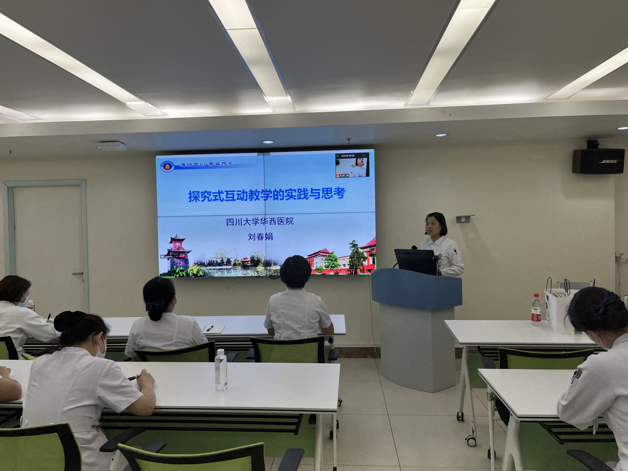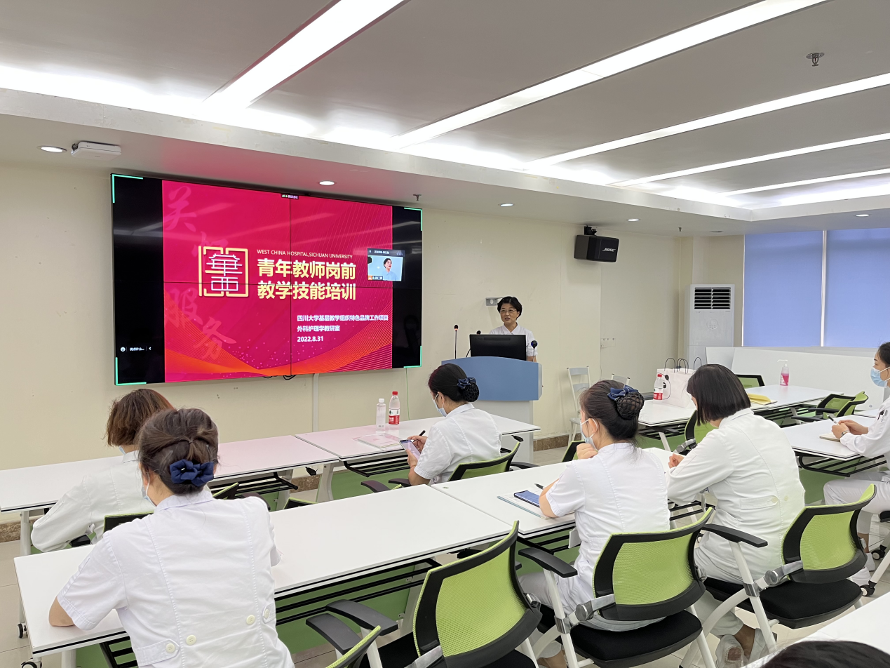 本次培训采用“线上+线下”相结合方式在bat365中文官方网站华西医院第二住院大楼4楼会议室举行,三位本科教学经验丰富的老师进行教学经验分享,外科护理学教研室龚仁蓉主任主持,外科护理学教研室中青年教师80余人参加培训。