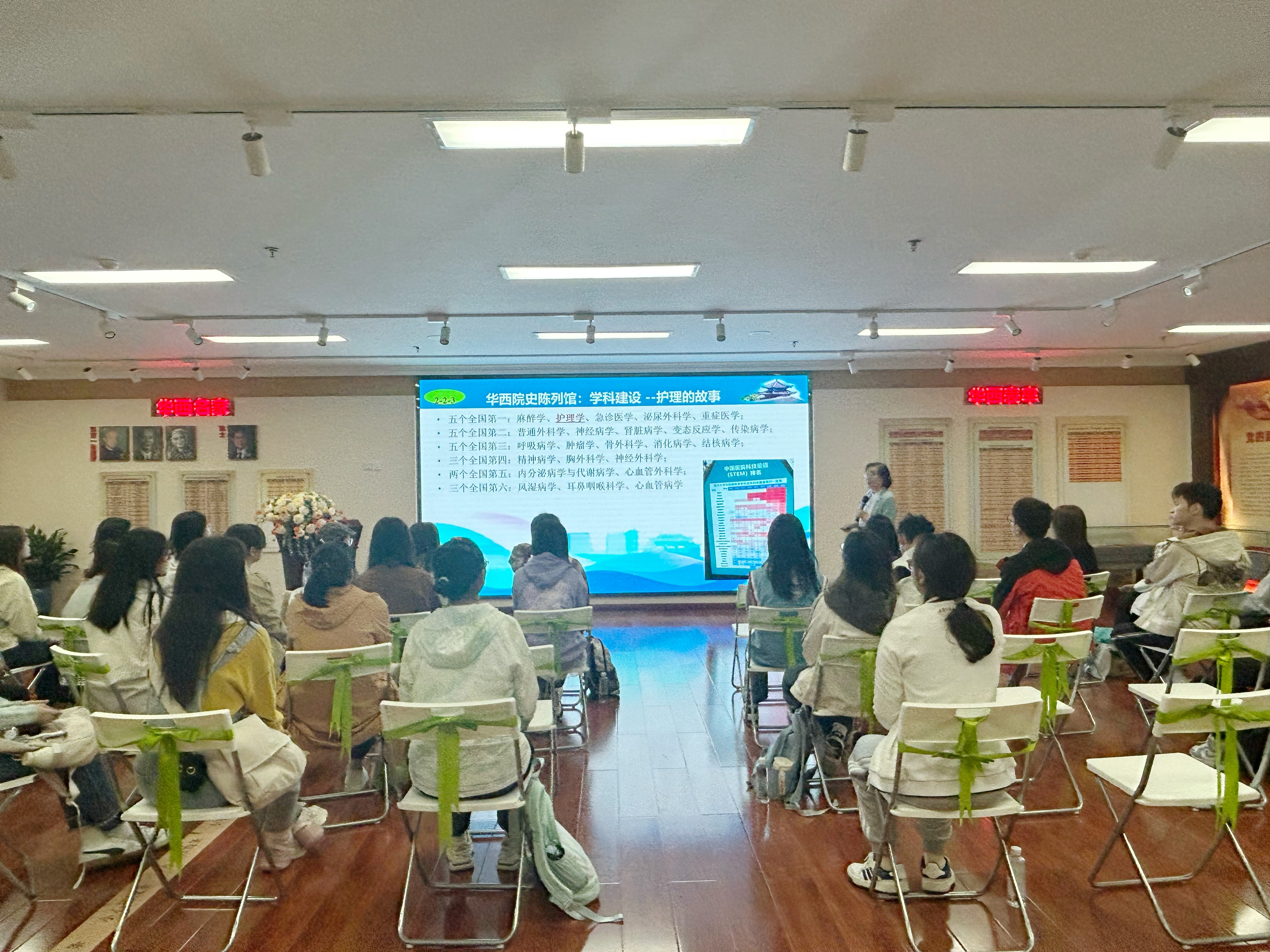 成翼娟教授带领学生们走进了华西院史陈列馆,引领他们追寻华西精神的悠久脉络,探寻护理学起源和医院管理的创新举措。同学们在这厚重的文化气息中沉浸,不仅领略了华西悠久的医学人文历史,更在分享中获得了思想启迪。