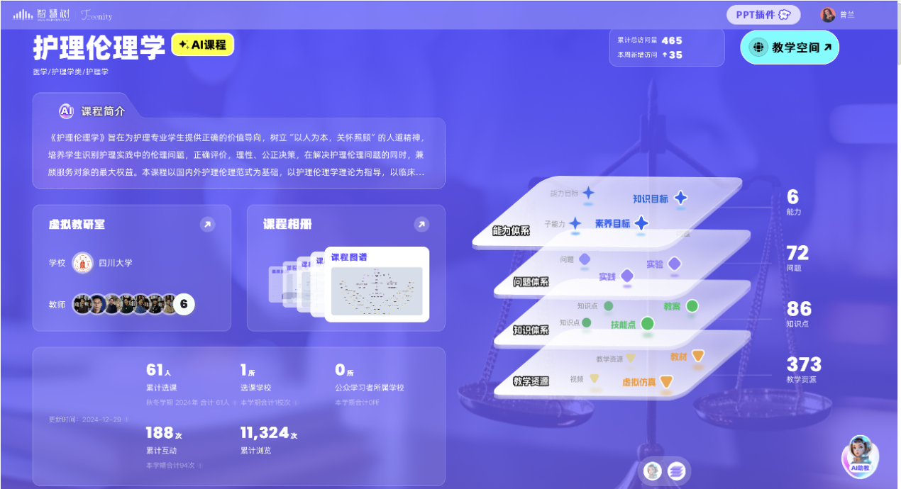 会议对《护理伦理学》AI课程知识图谱教学运行开展的“七大步骤”进行了详细介绍。
