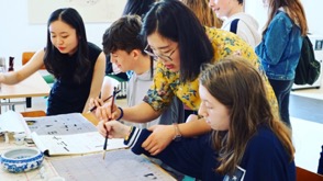 在爱岛工作的这十个月中,孔院以及我所在的几所中学都举行了丰富的中国文化活动体验,对于在异国的汉语教学来讲,各种形式多样的文化活动无疑是大有裨益的,通过活动不仅能能够让更多地人亲自体验中国优秀文化,同时能够帮助我们见一步在当地学校开展中文教学,提升汉语的影响力,让更多人产生学习的兴趣。比如九月份是科克市政厅举行了一次大型的文化展示活动——科克文化之夜,我们孔院的所有老师全体出动,分别负责不同的文化展示,如中国传统茶艺、民族乐器、书法、武术等等,我所在的书法组前来体验的人络绎不绝,大家都对我们手中的那只毛笔产生了兴趣,纷纷过来尝试,每当这时,我总会利用三个汉字来给他们示范——“日、月、山”,因为这三个字的甲骨文图画非常生动直观,对于大家理解汉字象形字特点极有帮助,而且三个字的楷书对于初学者较为容易上手练习。