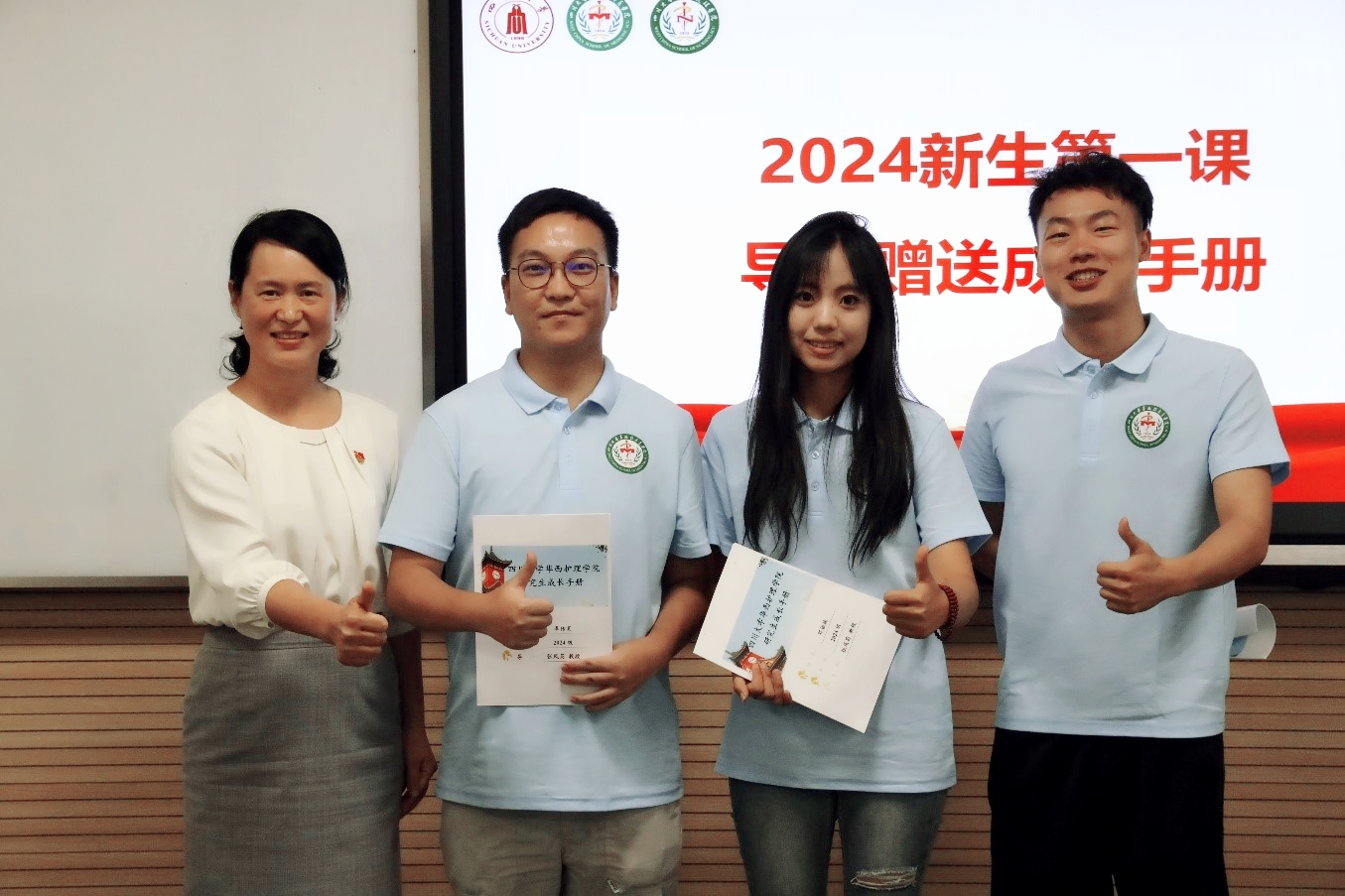 在师生互动环节,每一位新生进行了自我介绍并述说未来的短期目标和长期目标,研究生导师为每一位学生写下入学寄语并赠送成长手册。