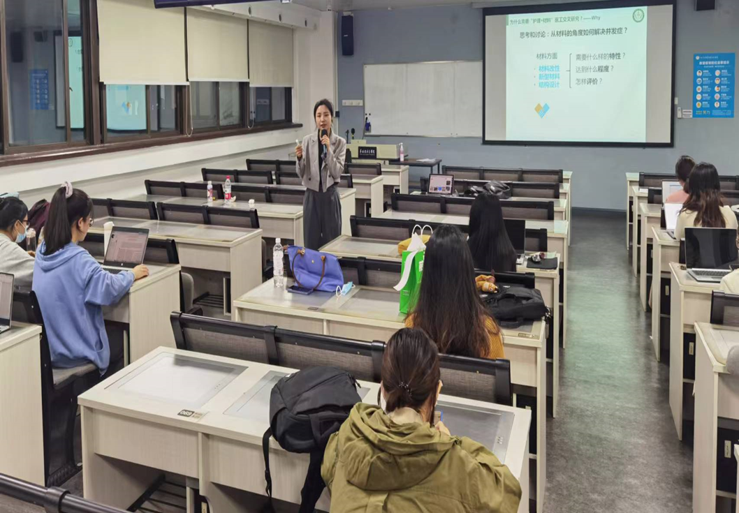 最后一堂课上,同学们分为6个学习小组分别进行项目汇报,同时邀请了生物材料及护理学院的专家进行指导,提高学生的创新性思维、解决问题的能力和跨学科团队的协作能力。
