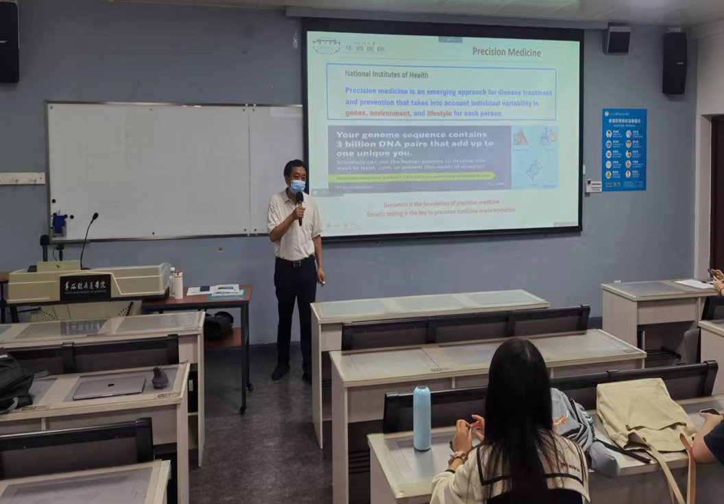 在第一堂课上,bat365中文官方网站华西临床医学院(华西医院)院长李为民教授以《精准医学的现状和发展趋势》为题进行主旨授课,对精准医学研究的最新趋势、精准医学在临床护理中的应用等展开精彩阐述,启发了同学们的创新思维,拓展了前沿知识领域。
