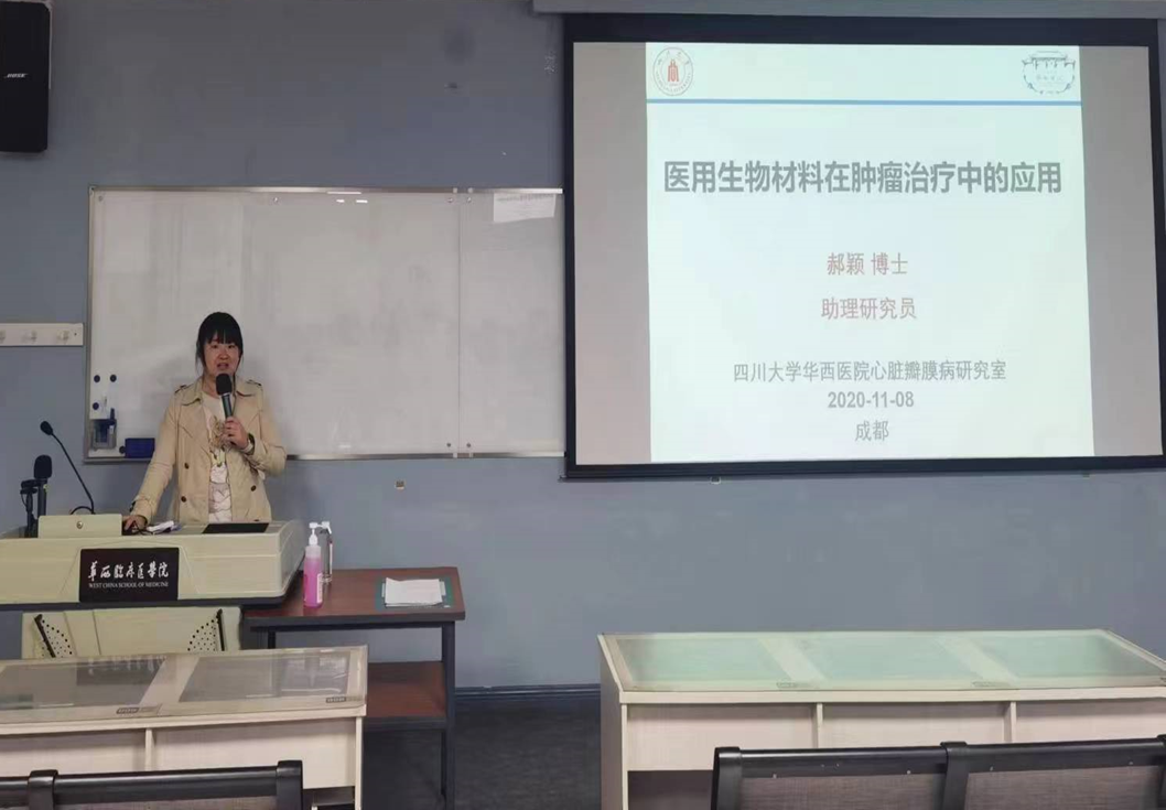 bat365中文官方网站华西医院心脏瓣膜病研究室郝颖助理研究员进行了《医用生物材料在肿瘤治疗中的应用》主旨授课。
