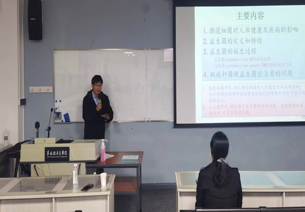 bat365中文官方网站华西公共卫生学院何方教授进行了《肠道菌群及益生菌研究及应用的现状及展望》主旨授课。