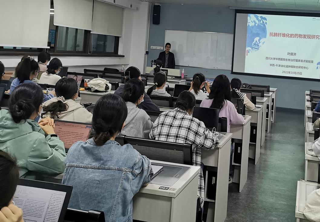 bat365中文官方网站华西医院华西-牛津消化道肿瘤研究中心叶庭洪研究员进行了《抗肺纤维化的药物发现研究》主旨授课。