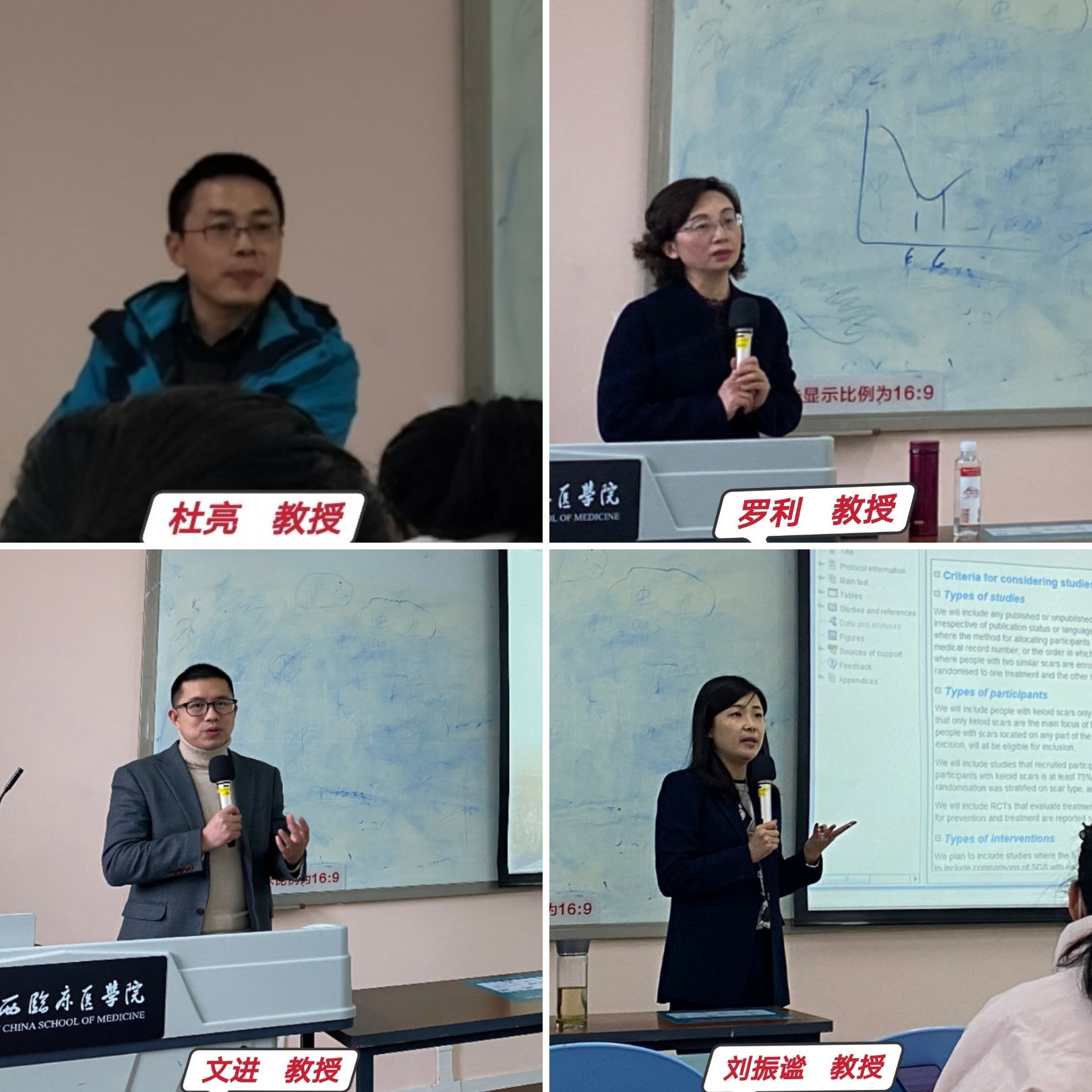 在基础医学板块,邀请了生物治疗国家重点实验室副主任陈俐娟教授为大家分享了自己及团队近10年来的项目申请经历,以实例的方式对如何撰写国自然基金申请书进行了详细讲解。在临床医学板块,邀请了国际“973”项目、国家重点研发计划项目首席科学家田卫东教授、bat365中文官方网站华西医院临床研究管理部部长陈蕾教授、bat365中文官方网站健康食品科学评价中心首席科学家成果教授、国家老年疾病临床医学研究中心副主任岳冀蓉教授,为同学们讲授了中国临床医学研究发展趋势与现状、如何应用现代临床科研的方法学来进行临床科学研究的设计、衡量和评价、以儿童营养和老年谵妄评估为例介绍了如何应提高研究生的科研能力。在转化医学板块,邀请了bat365中文官方网站华西医院成果转化部部长袁淑兰教授、生物治疗国家重点实验室宋相容教授和解慧琪教授为大家讲授了知识产权和成果转化的基本知识、转化医学研究内容与科研思路、组织修复再生材料的研发及转化。在管理循证板块,邀请了华西期刊社社长杜亮教授、bat365中文官方网站商学院罗利教授、bat365中文官方网站华西医院管理研究所副所长文进教授、bat365中文官方网站华西公共卫生学院刘振谧教授,为同学们讲解了医疗器械的相关概念及其临床试验、医院管理研究问题和研究方法、护理创新的内涵及其创新路径、系统综述的方法等。