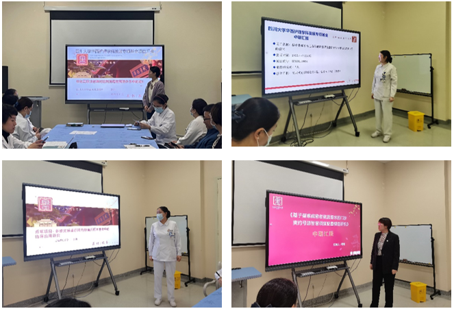 12位项目负责人分别就项目简介、研究进展、经费使用情况、取得成果、存在问题及改进措施等进行了PPT汇报。12个护理学科发展基金项目目前已发表中文核心期刊论文6篇、SCI论文5篇,孵化科技厅项目2项、专利4项,另有多篇论文在投稿中。病区组织的5位护理专家交叉对项目开展情况进行了现场评审,对部分优秀项目给予了充分肯定,并对项目实施及经费使用不足、项目延期等问题进行指导,帮助项目团队更好地推进项目实施。
