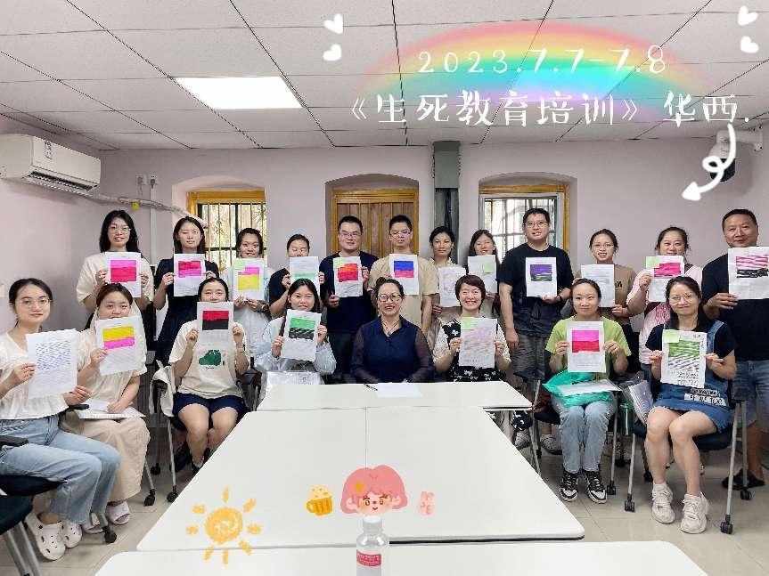 培训次日,来自我院校友—澳门镜湖护理学院的朱明霞教授主讲了《医者如何面对无法挽回的生命》,再次阐述了当医护人员面对无法避免的死亡时应持有的态度,并通过图画“生命格子”的方式帮助个人回顾和反思自己的人生,记录重要的经历和成长,以及制定未来的目标和计划。授课结束后进入“死亡体验与感悟”工作坊环节,参培者被分成五小组,分别由五位生死教育专家来进行组织和带领。他们通过案例模拟死亡场景,身临其境地体验了死者及家属之间的角色沟通和情感支持的挑战。最后,在指导专家的帮助下,学员们积极分享自己当下的体会,宣泄自己的情感。生死教育讲的是生命的价值和意义,教会人们正确面对自我之死和他人之死。只有经历过死亡,才懂得尊重生命和体会亲情。这一工作坊的实践体验进一步加深了参培人员对生死教育的理解和应用能力。