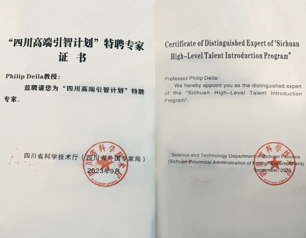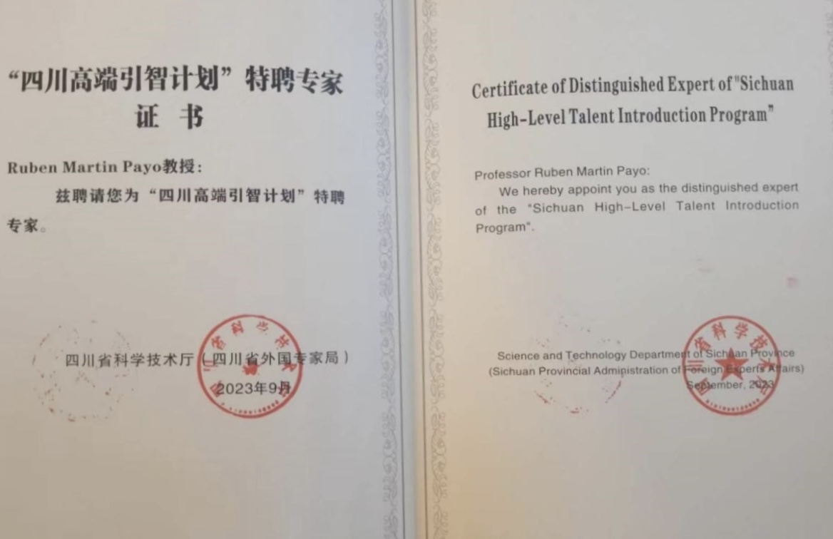 我院两名外籍教授获聘“四川高端引智计划”特聘专家