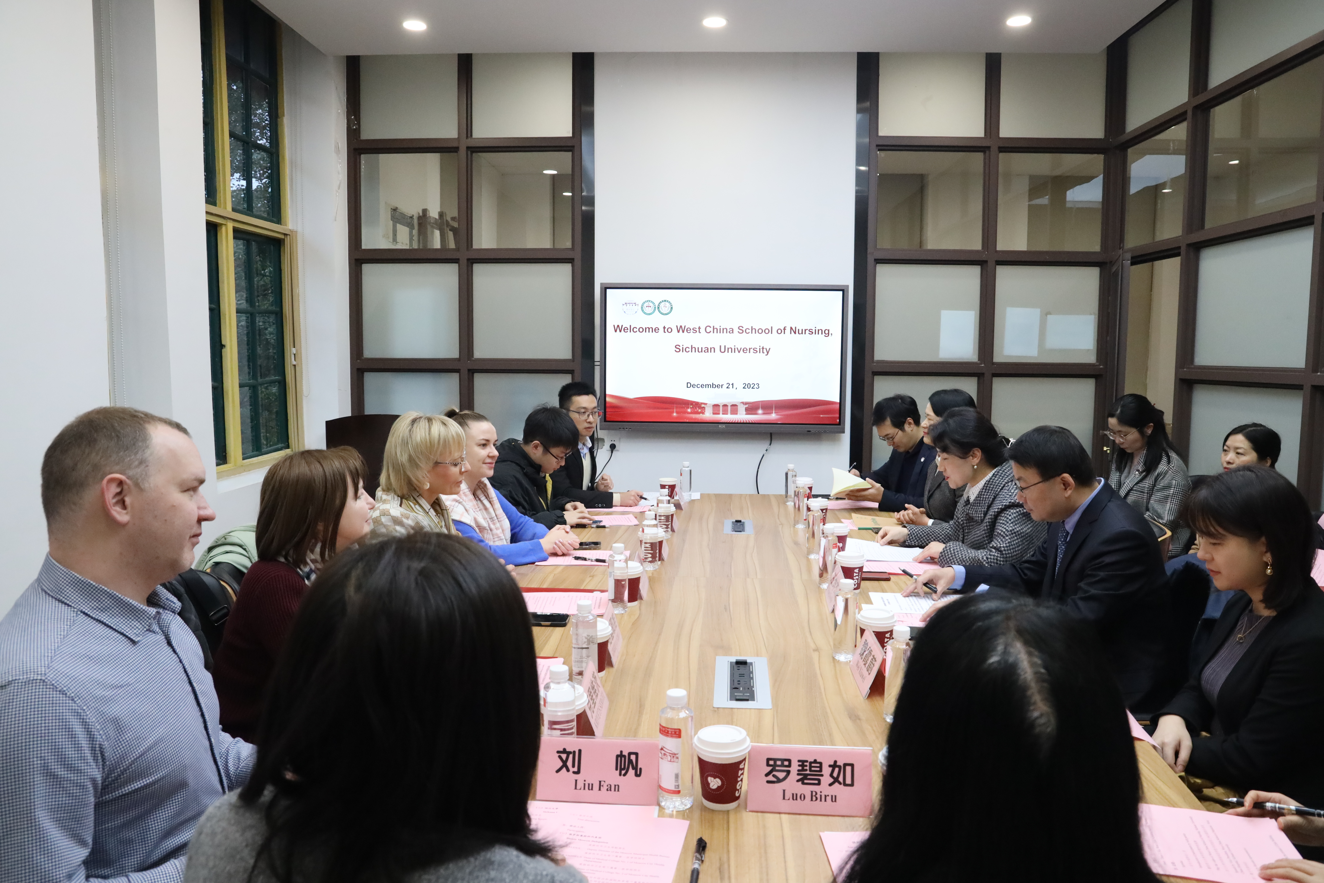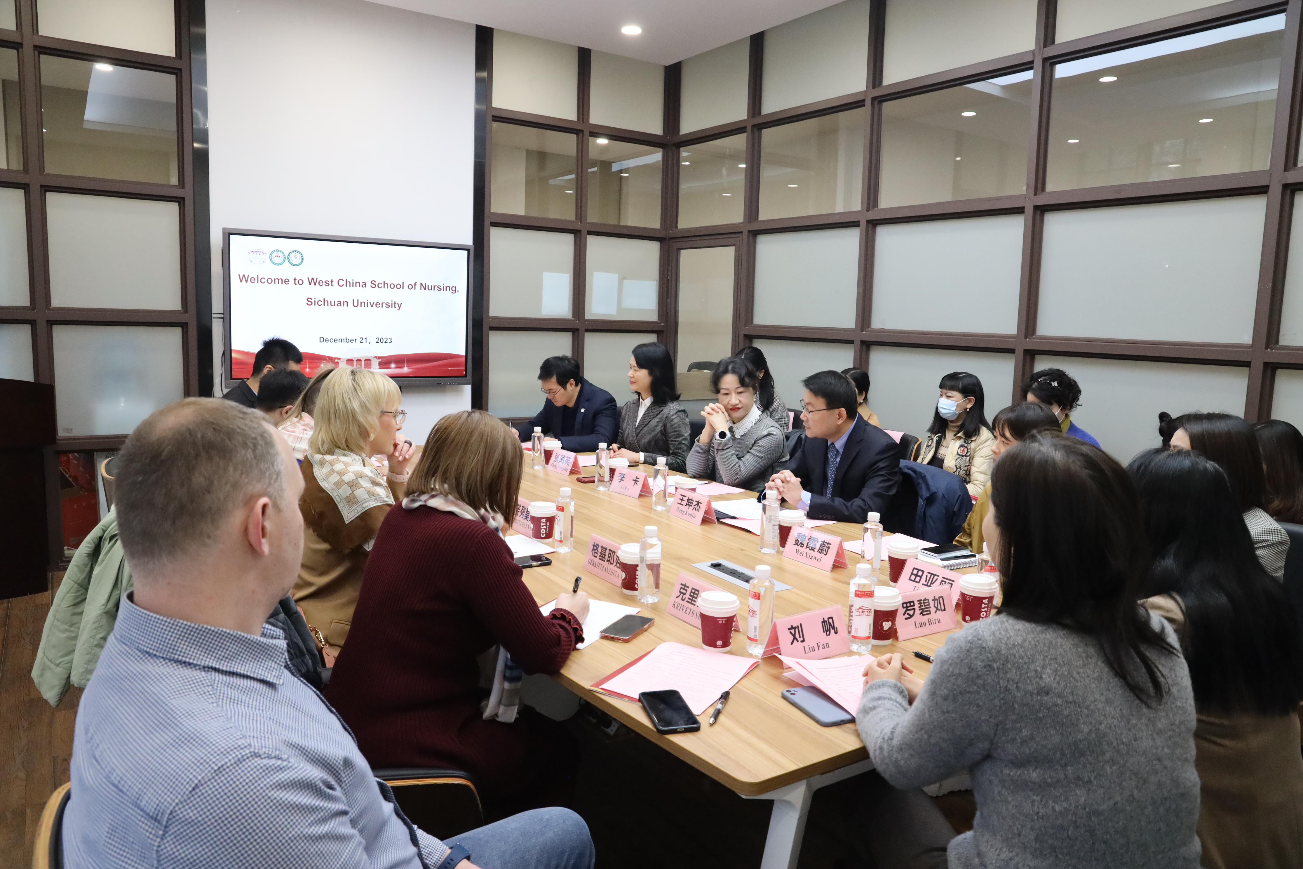 12月21日,由俄罗斯莫斯科市卫生局叶芙列莫娃副局长、卫生局下属第一医学院格基耶娃院长及第二医学院阿列克佩洛娃院长、莫斯科市对外经济和国际关系局下属莫斯科国际合作中心克里维茨顾问所组成的代表团一行在成都市委外事工作委员会办公室亚非处肖新星顾问的陪同下来我院访问交流。bat365中文官方网站华西临床医学院/华西医院副院长王坤杰教授,国际合作与交流办公室主任魏霞蔚教授,护理学院及各附属医院护理师资代表参会交流。座谈会由bat365中文官方网站院长李卡教授主持。