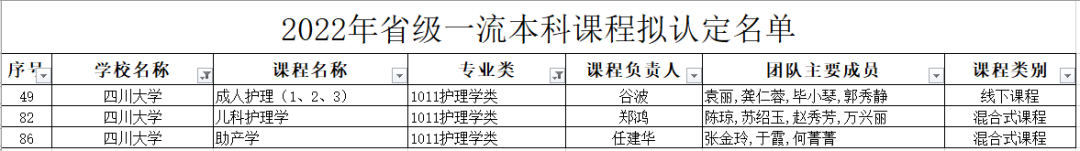 近日,四川省教育厅公布了2022年省级一流本科课程认定结果,我院《成人护理》(课程负责人:谷波教授)、《助产学》(课程负责人:任建华副教授)、《儿科护理学》(课程负责人:郑鸿教授)三门课程获批2022年省级一流本科课程。