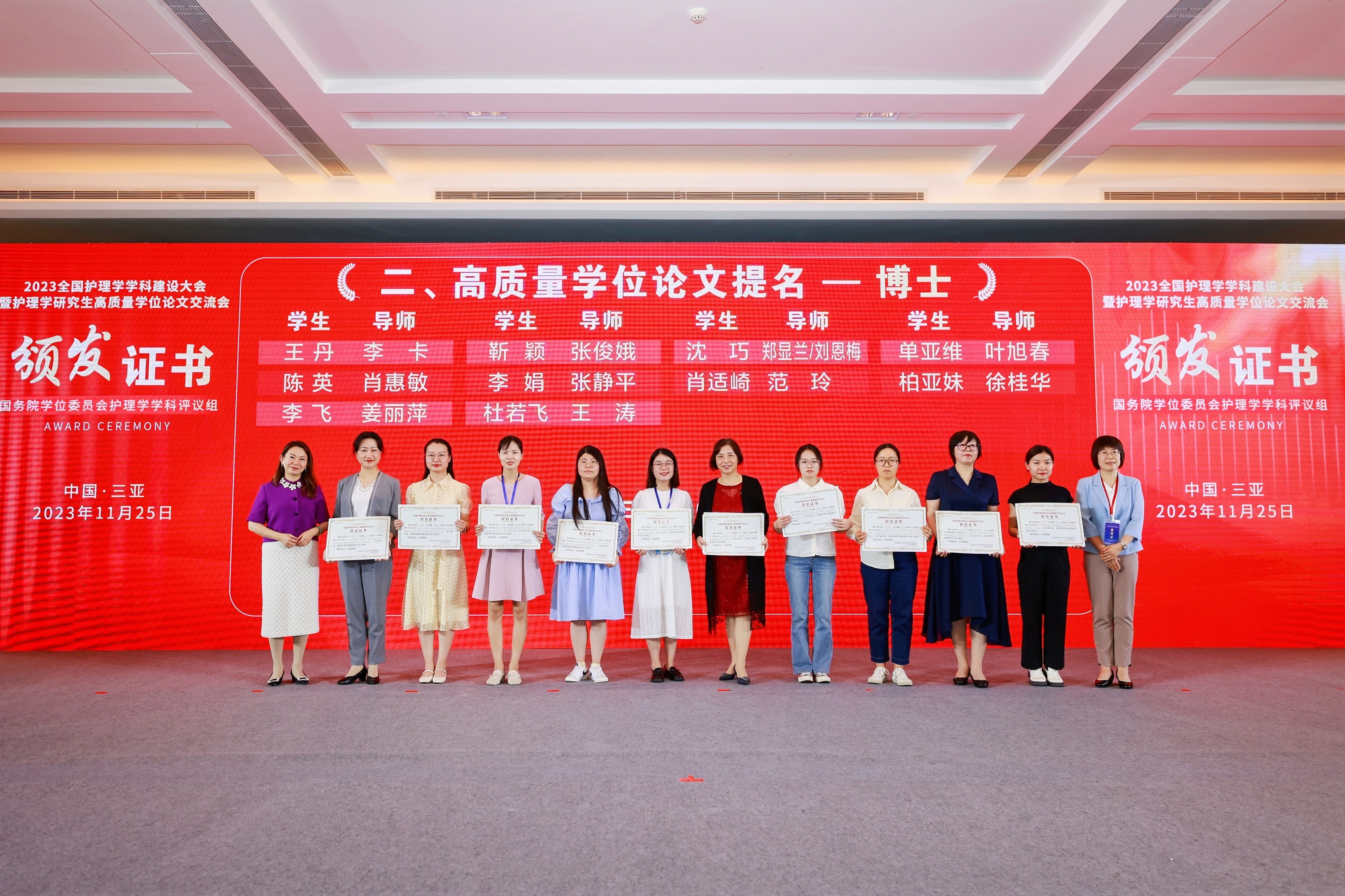 2023年11月23日-25日,国务院学位委员会护理学学科评议组在海南省举办“开拓创新·引领发展—2023全国护理学学科建设大会暨护理学研究生高质量学位论文交流会”,围绕“学科建设与研究生教育”“高水平教育推动学科建设”“需求牵引 突破引领”三个主题开展主旨报告。