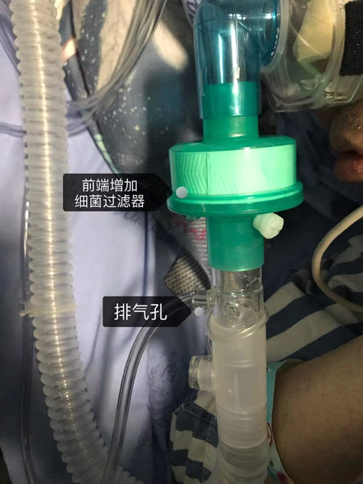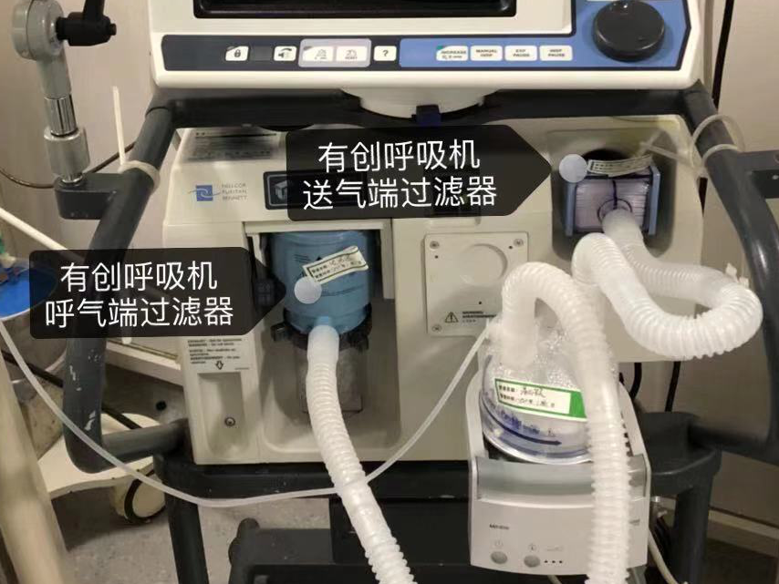 (1)在呼吸机端口连接细菌过滤器。除送气端口外,尤其注意在排气孔前端加装过滤器,以减少新冠病毒的排出,并在阻力增大时及时更换。