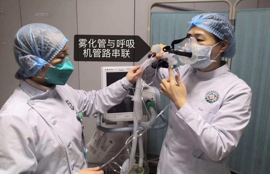 3. 无创正压通气过程中需雾化吸入治疗的,应使用螺纹T型雾化装置,串联于呼吸机管路和面罩间。