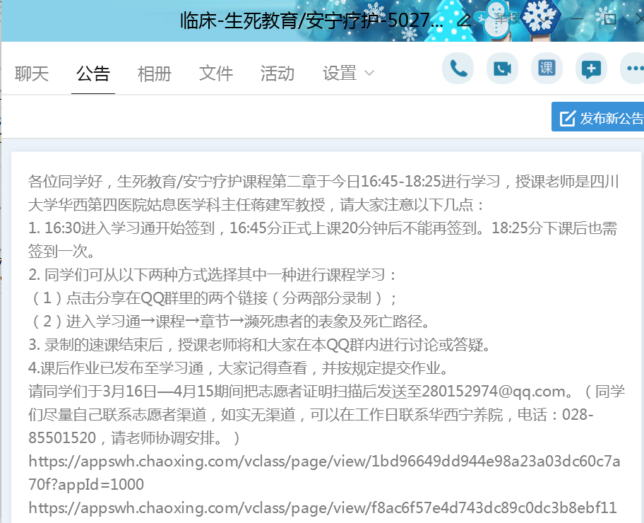 自疫情发生以来,安宁疗护教研室认真贯彻落实教育部、省教育厅及学校“停课不停教、停课不停学”的要求,积极应对疫情对新学期教学工作的影响。