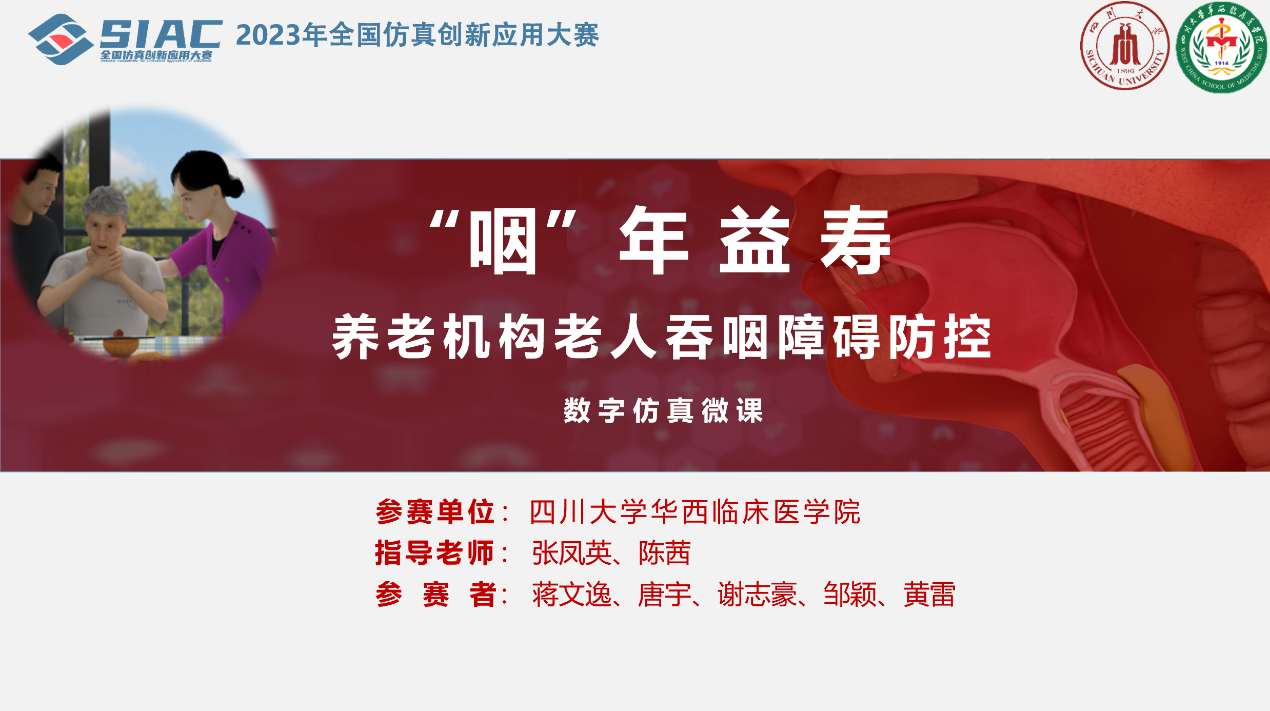 近日由工业和信息化部人才交流中心主办的2023年全国仿真创新应用大赛数字仿真微课制作方向全国总决赛在线上举行。本次总决赛共有来自全国的27支队伍从2000余件作品中脱颖而出,其中我院研究生团队的参赛作品《“咽”年益寿-养老机...