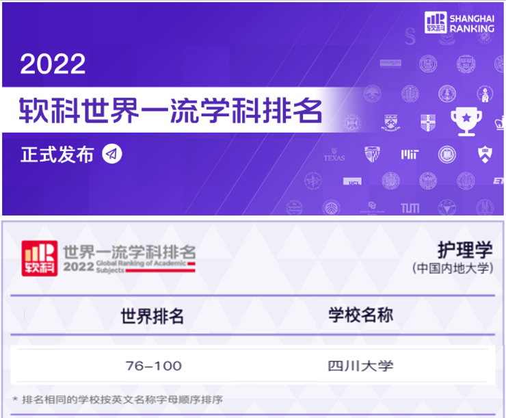 2022年7月19日,高等教育专业评价机构软科正式发布2022世界一流学科排名,bat365中文官方网站护理学进入全球护理学科76-100名。软科世界一流学科排名(ShanghaiRanking's Global Ranking of Academic Subjects,简称GRAS)覆盖54个学科,涉...