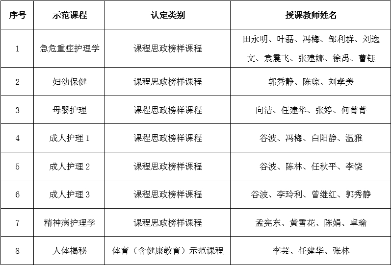 近日,四川省教育厅公布了2022年省级一流本科课程认定结果,我院《成人护理》(课程负责人:谷波教授)、《助产学》(课程负责人:任建华副教授)、《儿科护理学》(课程负责人:郑鸿教授)三门课程获批2022年省级一流本科课程。...