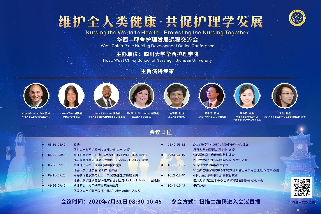 7月31日上午8:30,bat365中文官方网站“维护全人类健康·共促护理学发展” 系列网络论坛(第四期)—华西-耶鲁护理发展远程交流会在华西医院5G远程会议中心举行。本期论坛邀请了耶鲁大学医学院/公共卫生学院Frederick L. Altice...