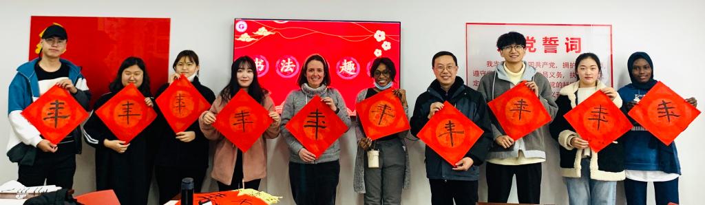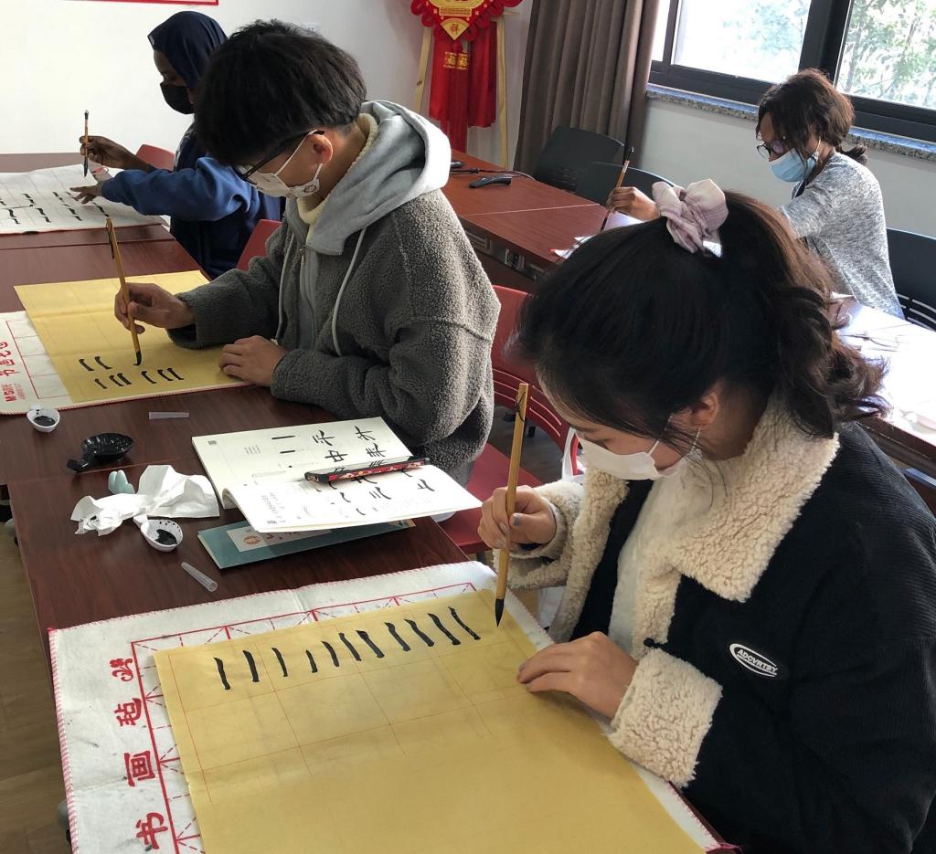 jdb电子中国官方网站书法兴趣坊寒假期间每周二下午在jdb电子中国官方网站固定时间举行,旨在为中外学生搭建学习平台,促进中外文化交流,丰富同学们的假期生活,后续还将开展系列活动。